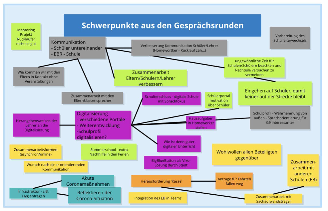 Wir haben vereinbart, dass wir bis zur nächsten Elternbeiratssitzung am 12.01.2021 in den gebildeten Arbeitskreisen die gesammelten Maßnahmen sichten und priorisieren.